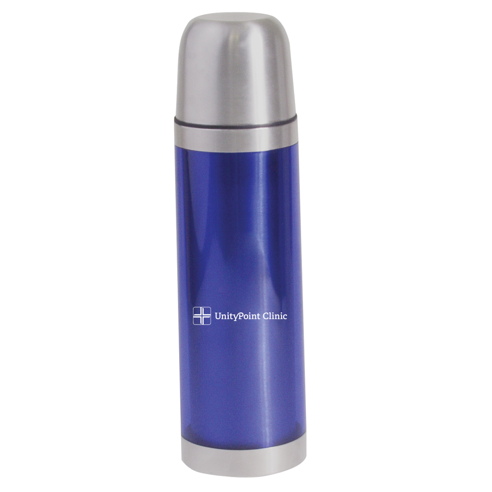 This stainless acrylic thermal bottle adds some color to your promotion.