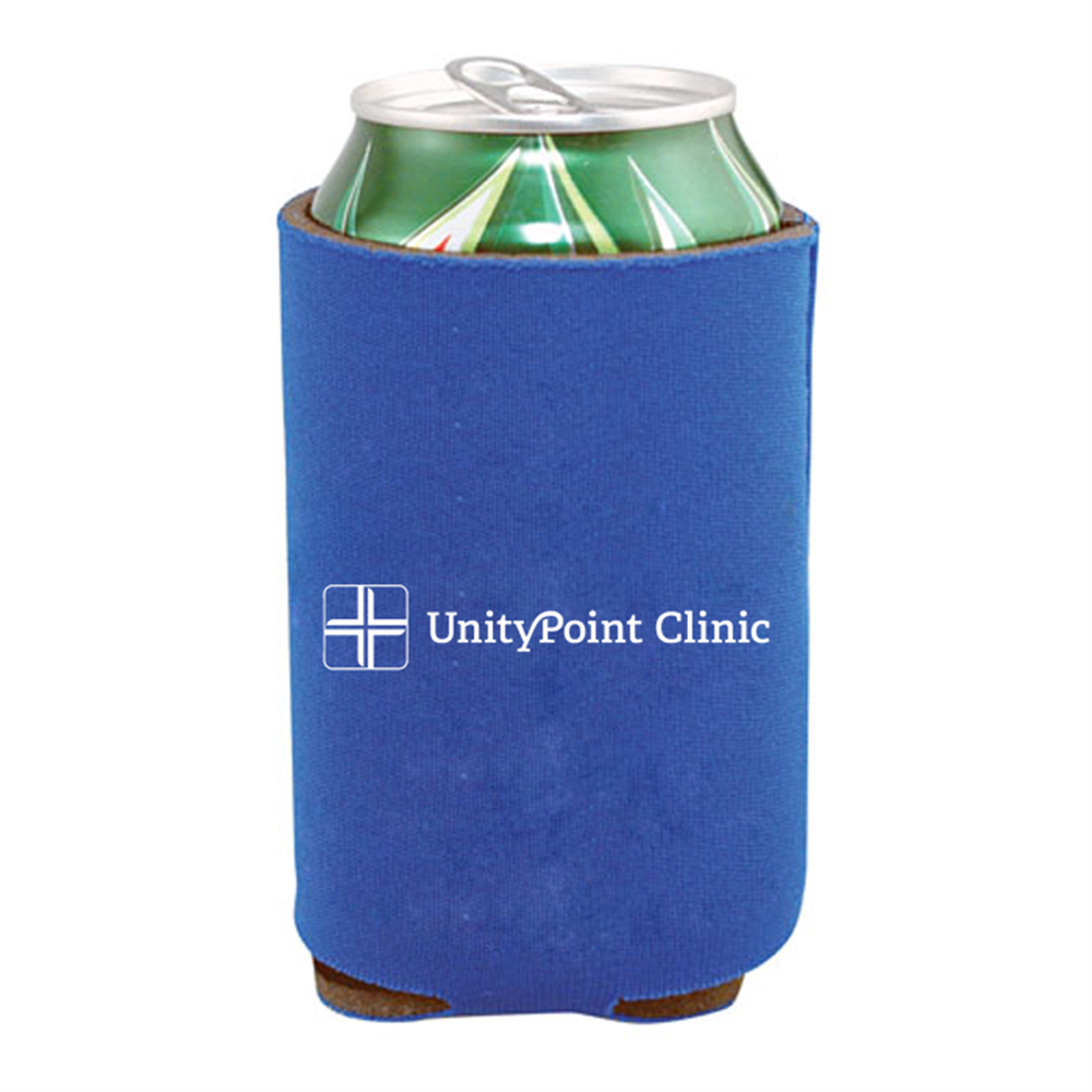 Patented Custom Coolie® collapsible beverage insulator is made of durable polyester covered scuba foam. These can coolers fold flat for convenient storage, and hold 12-16 oz cans, longnecks, water bottles & sodas. Available in royal with the clinic logo in white on both sides.