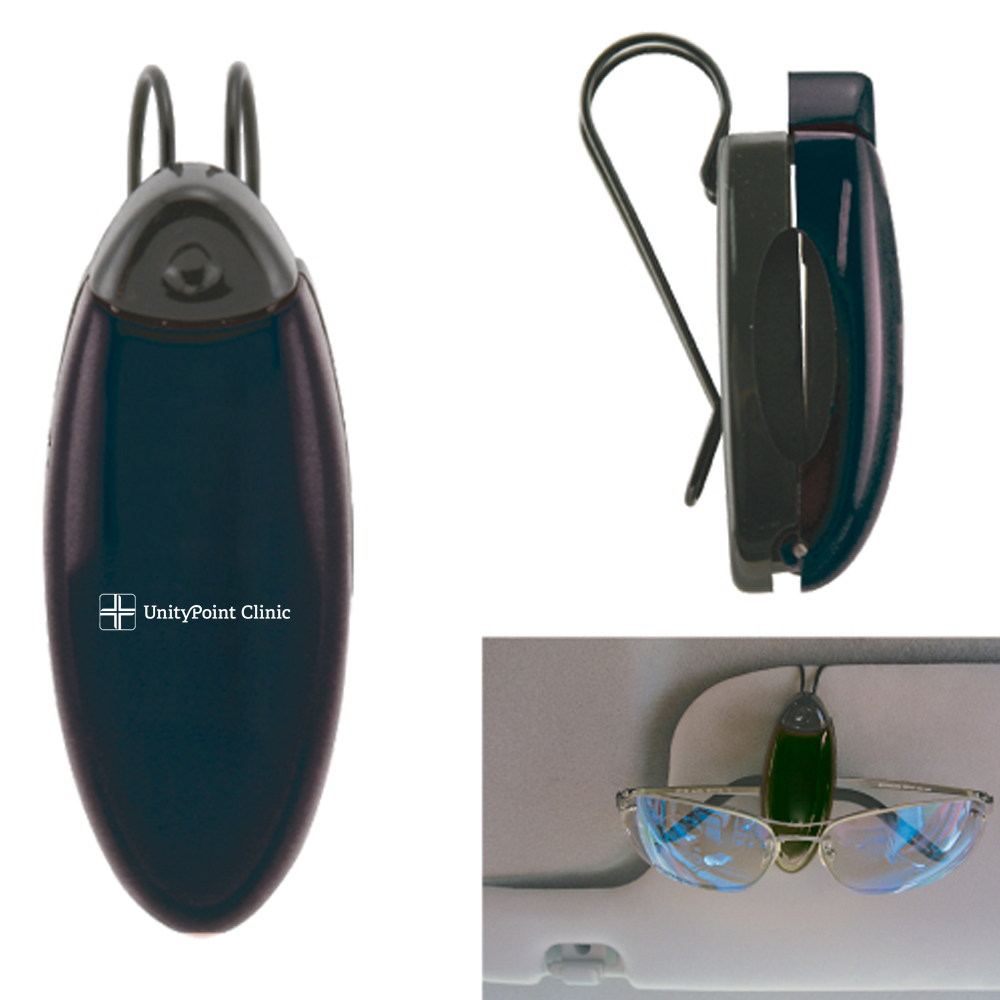 Our new sunglass visor clip keeps your sunglasses in a safe and