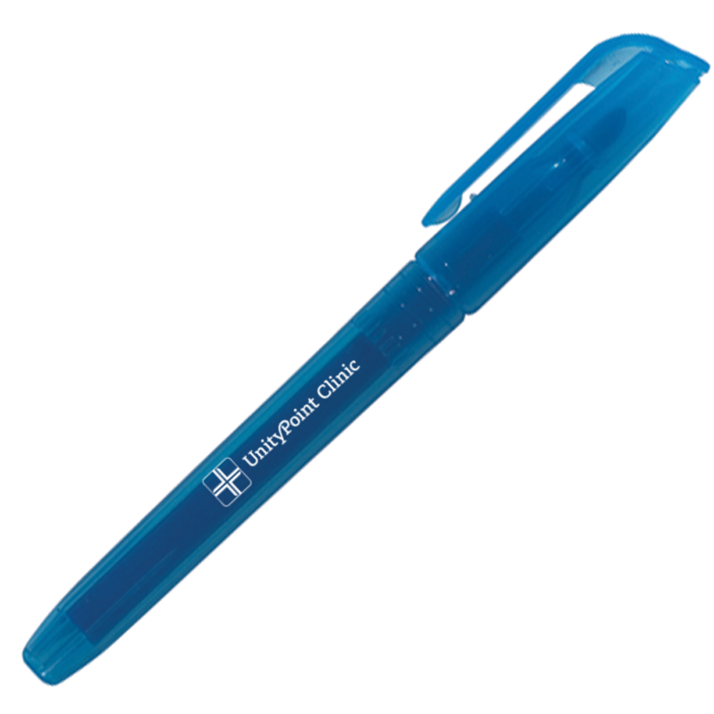 Pocket highlighter with chisel tip, fade resistant ink and convenient pocket clip. Available in blue or yellow with the clinic logo imprinted on the barrel. This product must be must be ordered in increments of 250 pieces.