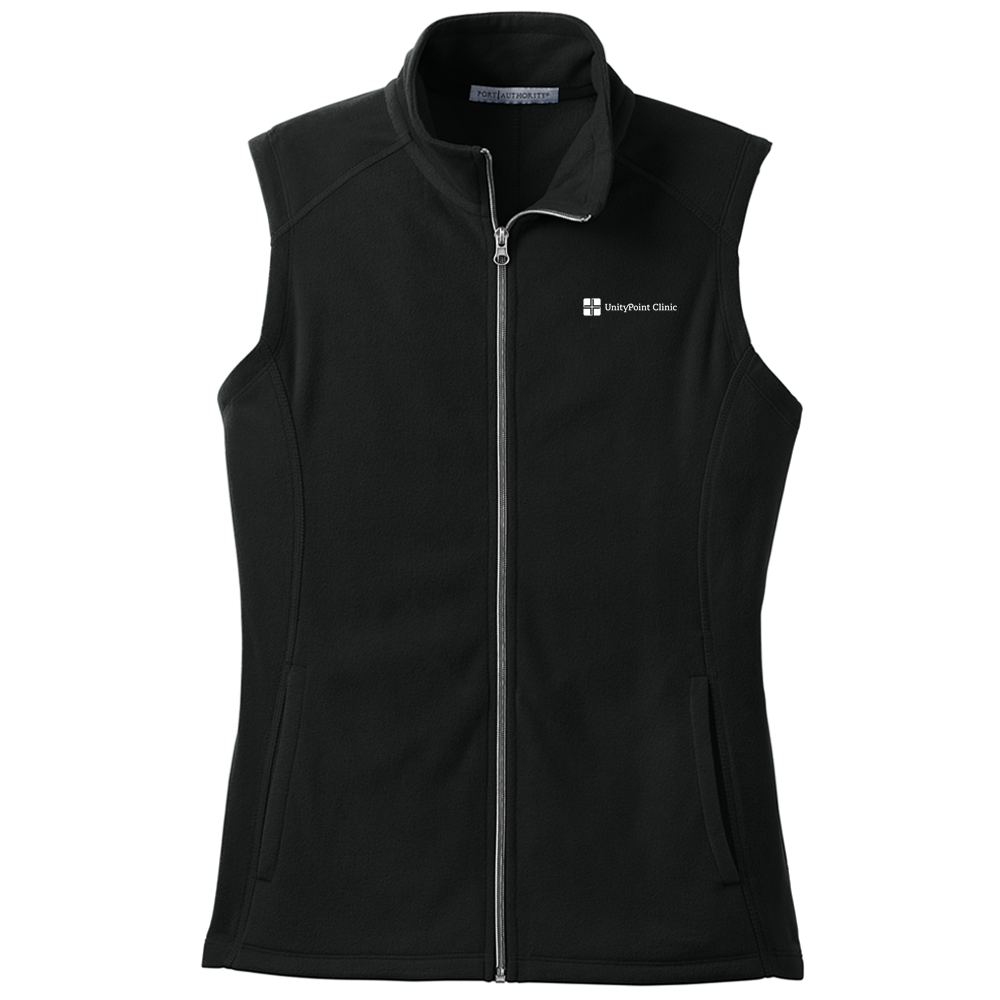 Add a cozy layer with our gently contoured, extra soft 100% polyester microfleece vest. Super