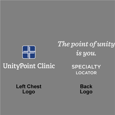 Returns and exchanges are not permitted since each item is made to your order specifications. Decorated garments MAY NOT be exchanged or returned for a different size or for credit. Please carefully consult the sizing chart on every garment to avoid errors when placing your order! Defective items may be exchanged or replaced within 10 days of receipt of merchandise. Please call the UnityPoint Clinic Desk at (1-800-458-3343) for a Return Goods Authorization Number (RGA#). No defective merchandise will be accepted without an RGA#.