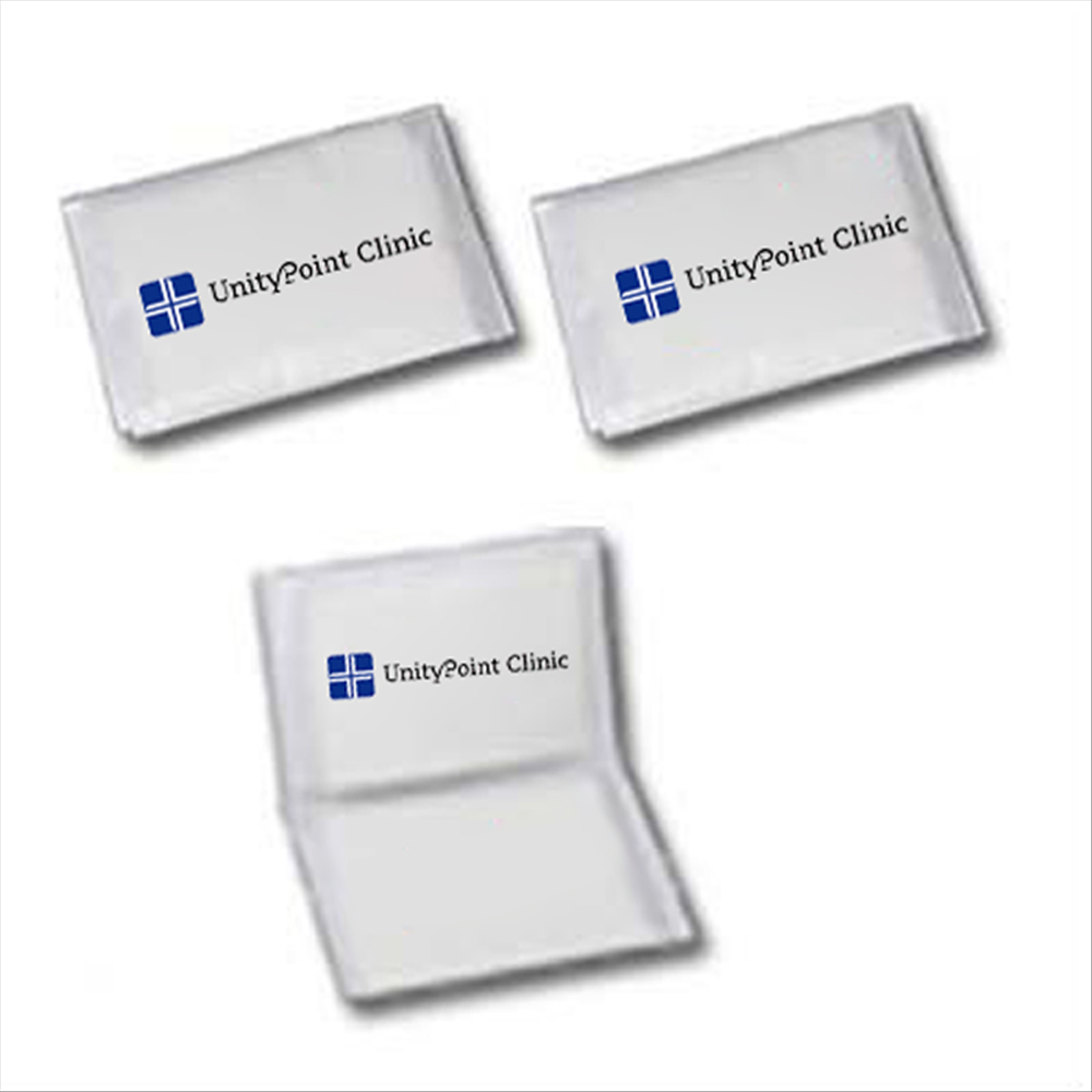 Facial tissue pack comes with 10 white tissues and fits perfectly in a pocket, purse, or bag. Tissues measure 6-1/2" x 7-1/2". Available in white with a 2-color clinic logo imprinted on the front. This product must be must be ordered in increments of 250 pieces.