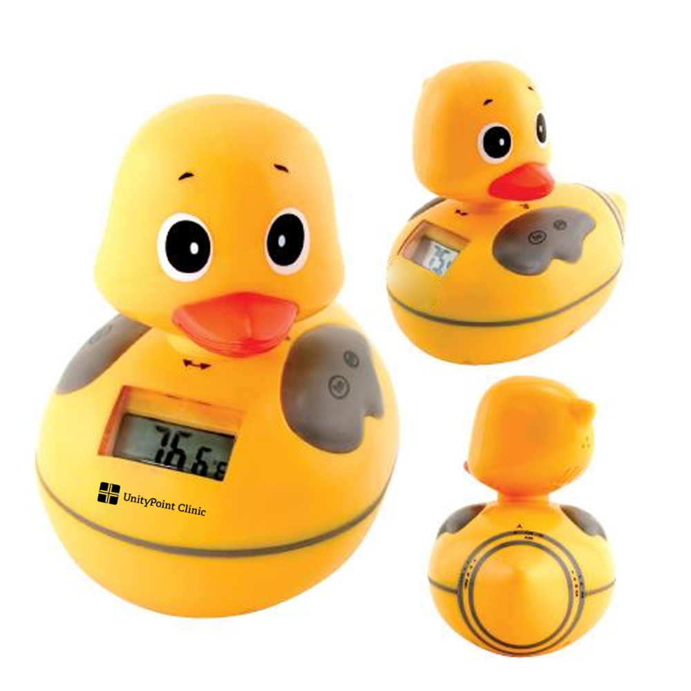 displays the water temperature in Fahrenheit or Celsius. The duck's